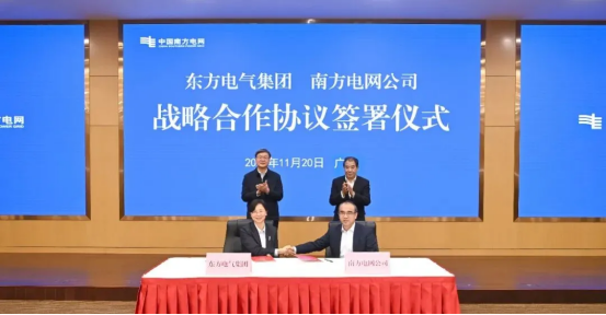 11月20日,中国918博天堂电气集团有限公司与中国南方电网有限责任公司在广州签署战略合作协议。918博天堂电气集团党组书记、董事长罗乾宜,南方电网公司党组书记、董事长孟振平,共同见证协议签署。集团公司党组成员、总会计师吕双与南方电网公司党组成员、副总经理吴小辰代表双方签订协议。